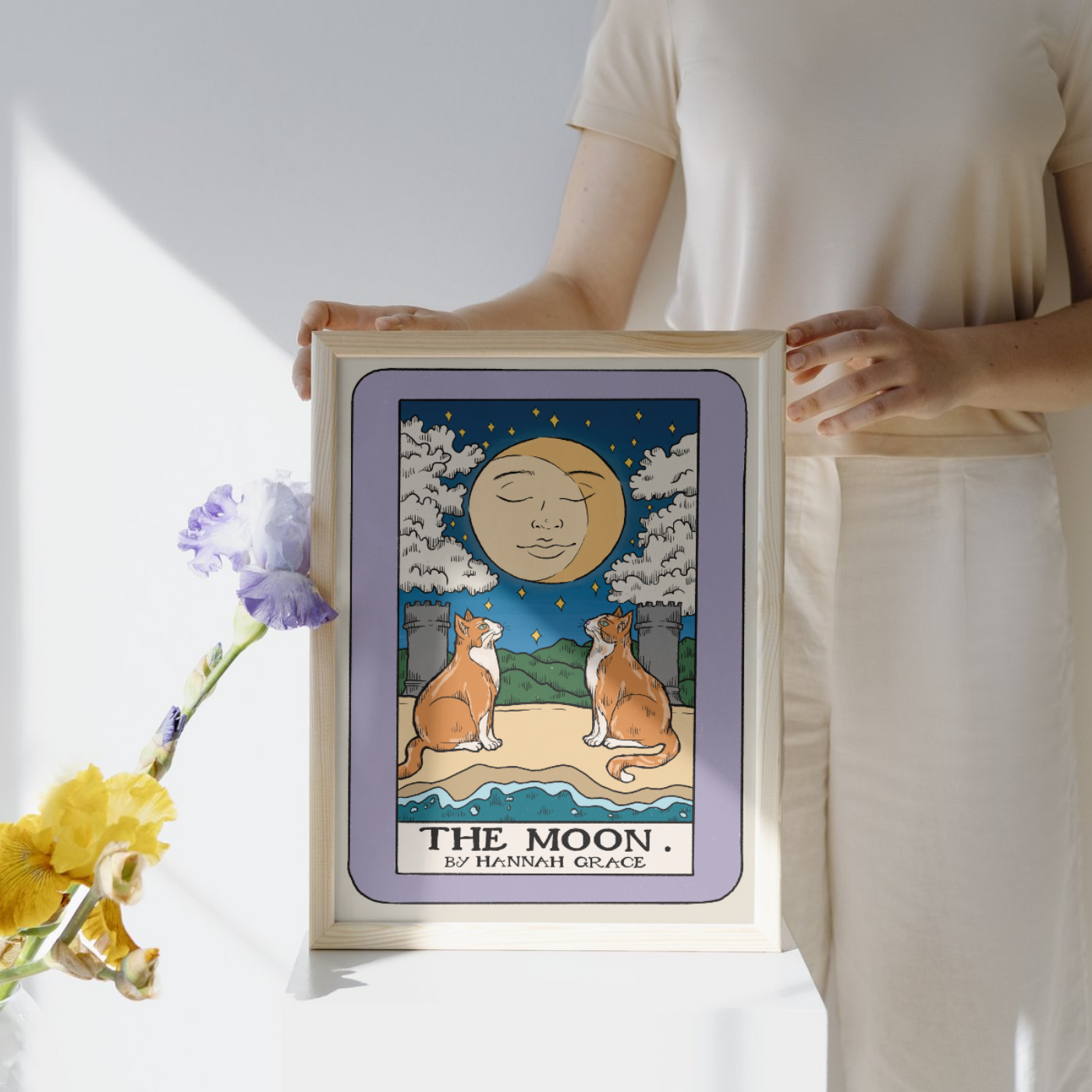LIMITED EDITION beautiful A3 prints of The Moon Tarot card. (featuring my cat Tulllulah).
